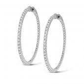 Diamond Inside Outside Hoop Earrings in 14k White Gold with 100 Diamonds weighing 2.55ct tw.