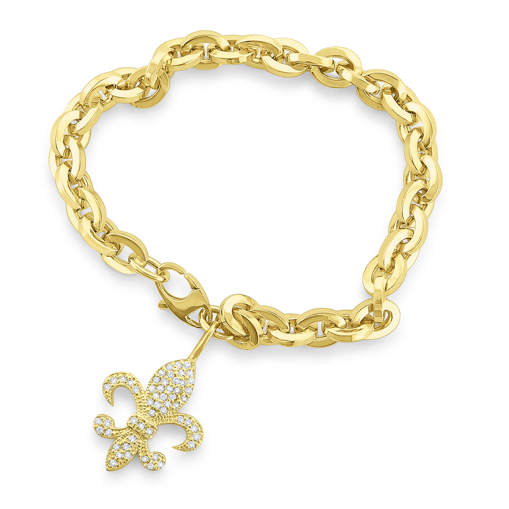 Go bold with this stunning link bracelet charmingly accented with a large diamond fleur-de-lis.
