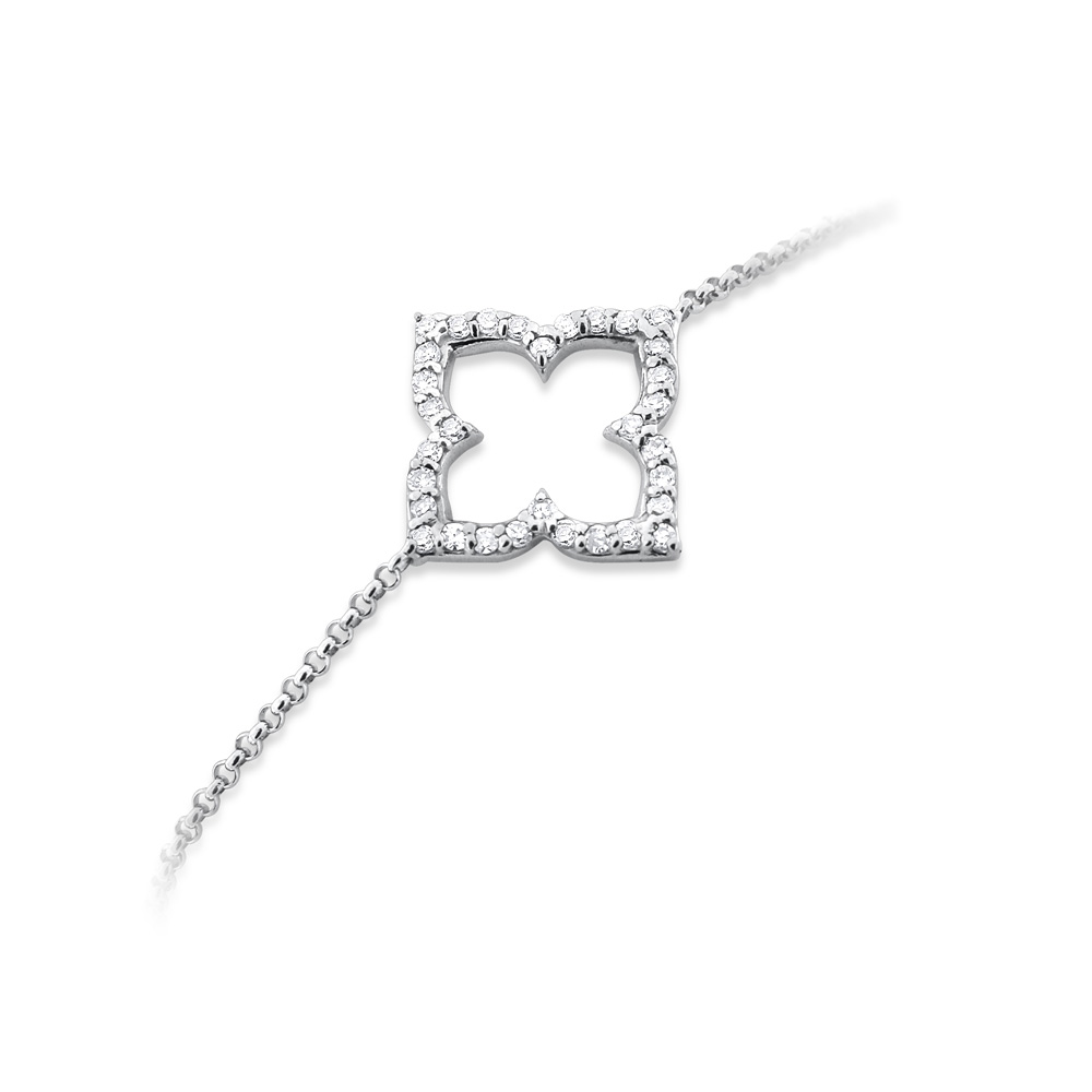 Let this dainty, diamond bracelet be your lucky charm! This sweet floral charmer set in 14K white gold with 32 shimmering diamonds weighing .16 ct tw, is the perfect gift for any gal. You will be ready for anything once you don this adorable bracelet.