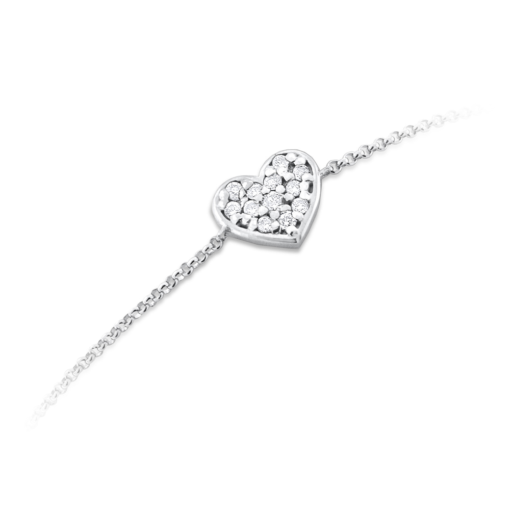Diamond Heart Bracelet in 14K White Gold with 12 Diamonds Weighing .14 ct tw