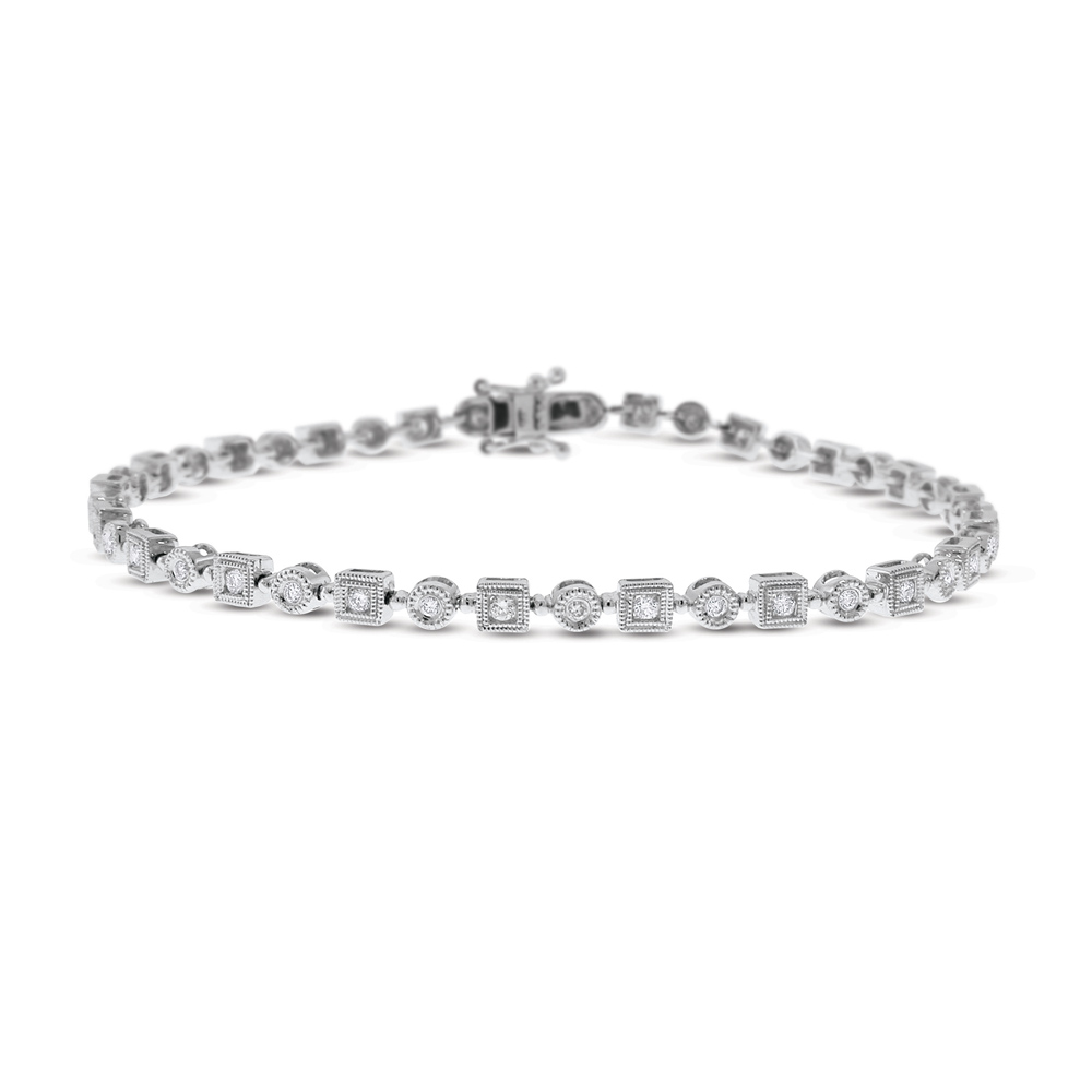 Geometric shapes accented in diamonds are the perfect match to be worn with your favorite watch.