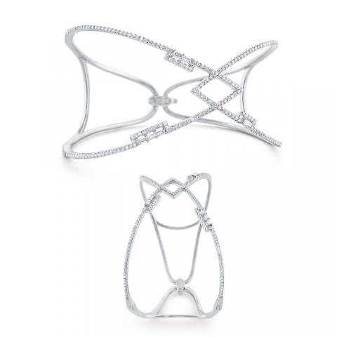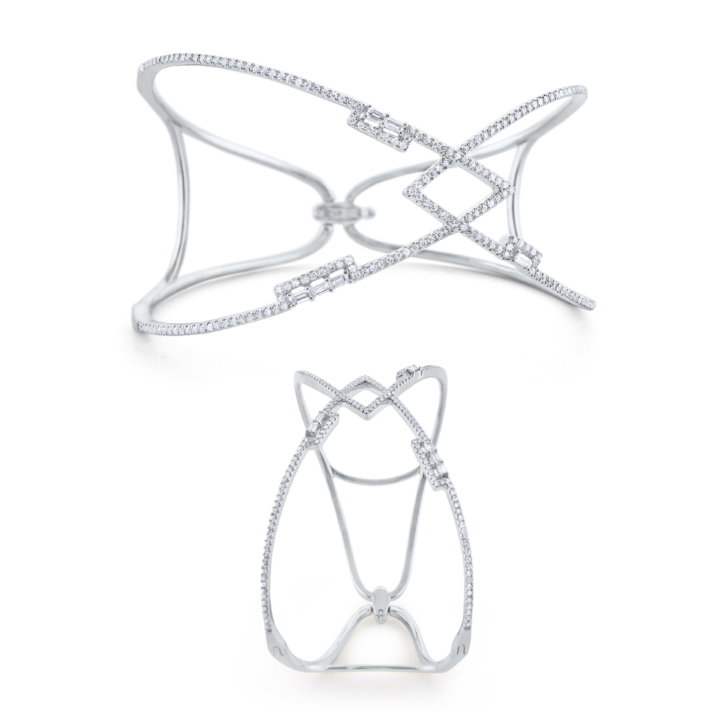 Inspired by ancient mosaics, this bracelet is part of KC Designs Mosaic Collection. It features round brilliant diamonds lined up in a cross over pattern, with baguette diamonds adding sparkling geometric accents.