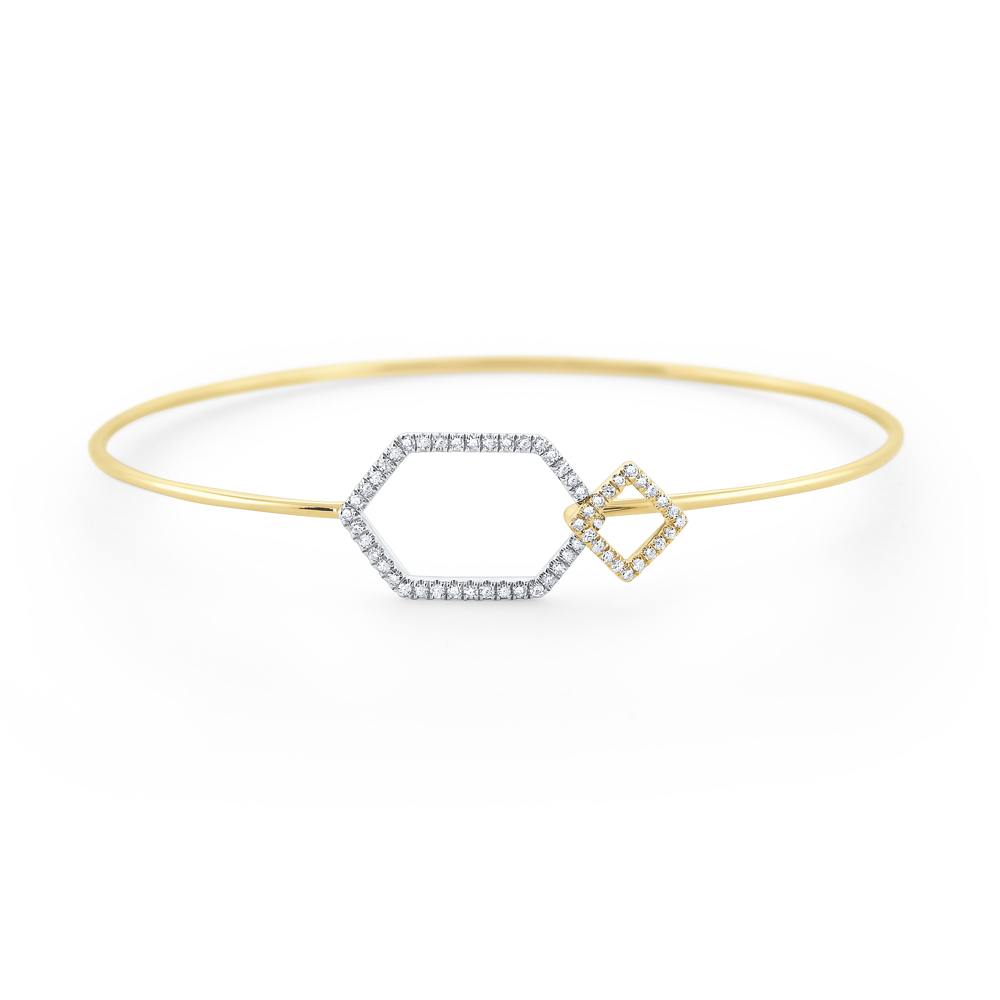 Diamond Wire Bangle with Geometric Clasp Set in 14 Kt. Gold