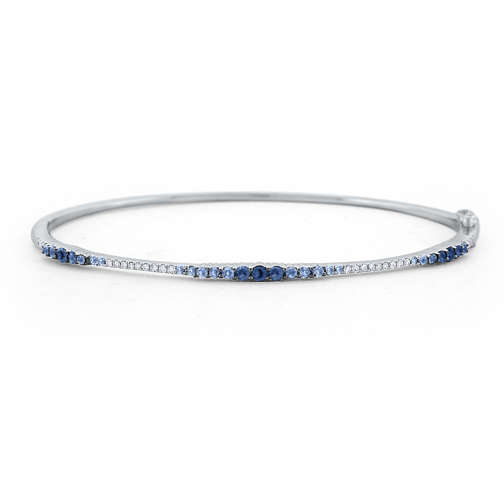 Be on trend with this cool bangle! Deep blue sapphires fade to light blue and blend seamlessly with shimmering accent diamonds. Part of KC Designs Everyday Color collection, this bracelet adds the perfect pop of fun color to your favorite look.