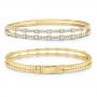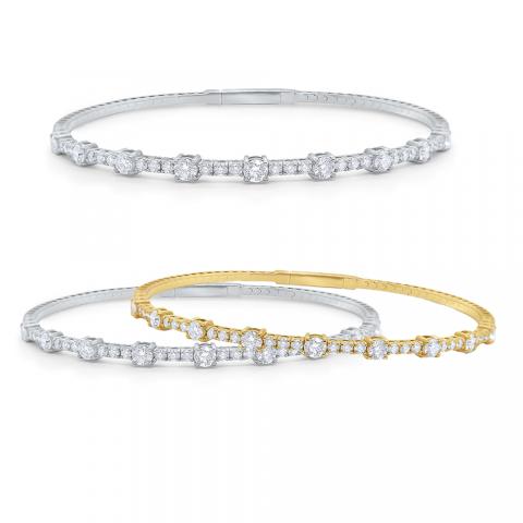 A great new addition to your stacked bangle collection. Available in white, yellow and rose gold this diamond bangle is also flexible one opened for easy on, easy off.