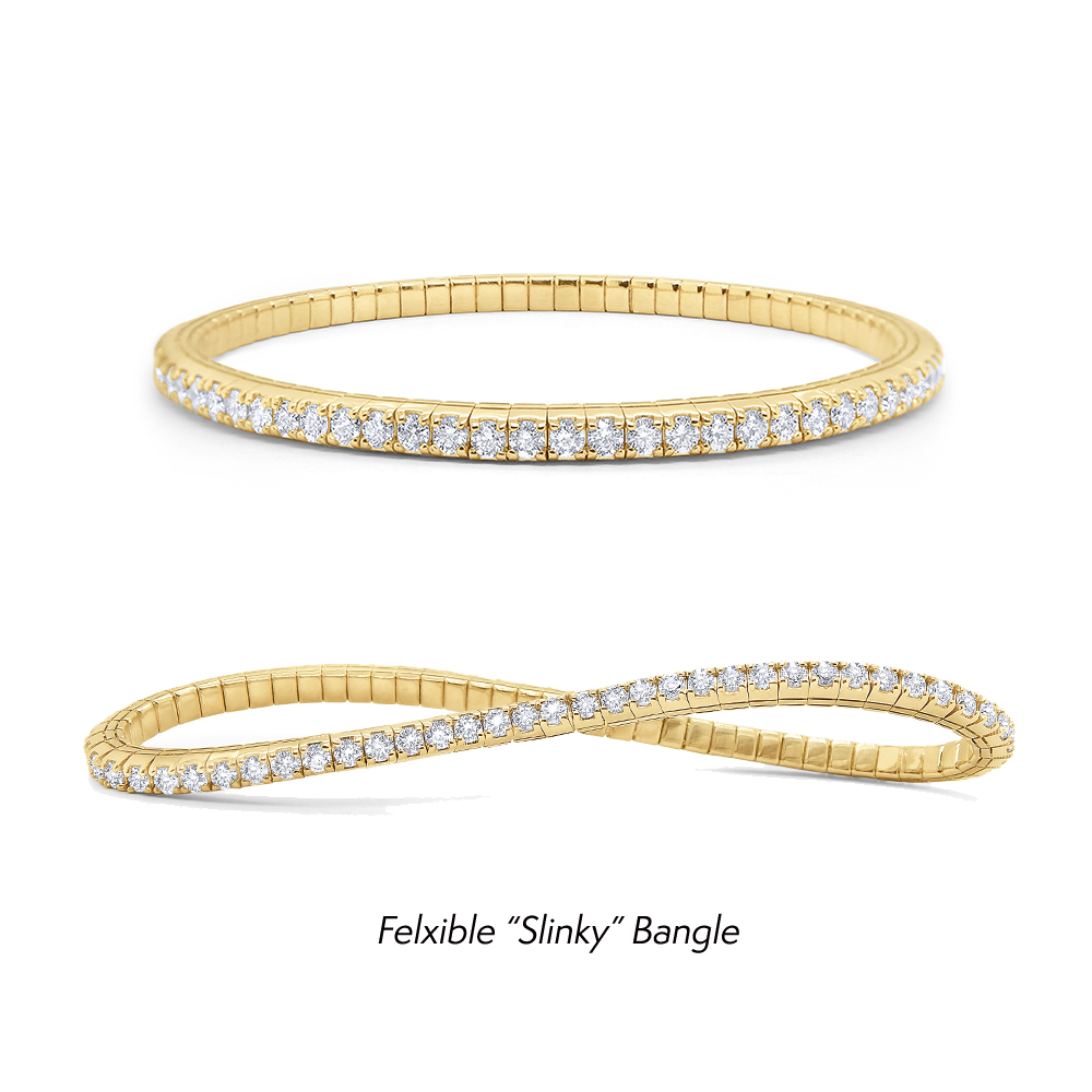 Easy on, easy off! This stunning diamond eternity slip on bangle is hassle free...no clasp and and safety to bother with. Just slip it on!
