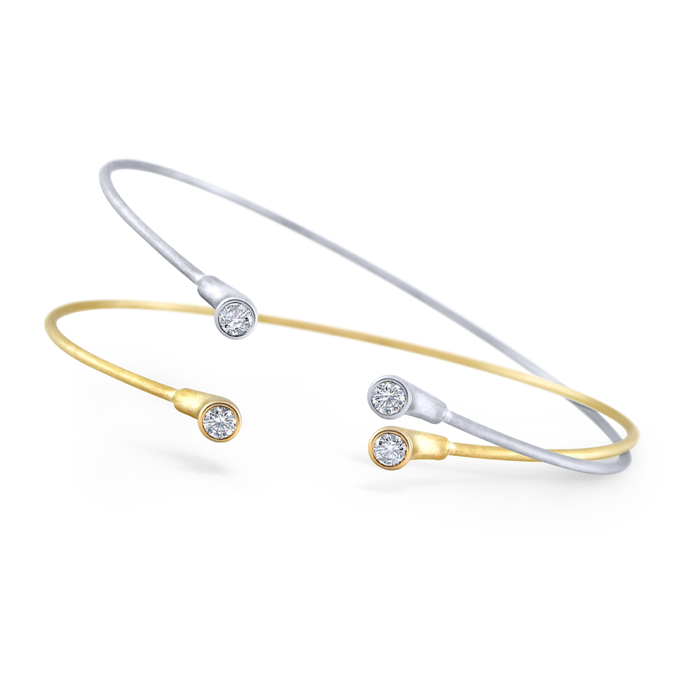 Simple with just enough sparkle, wear this two stone bangle stacked with others for a trendy look.