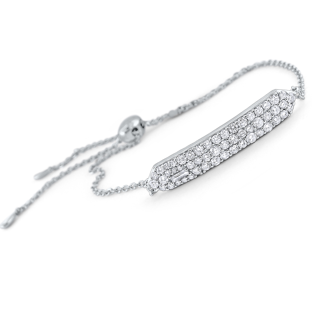 One size fits all with this diamond pave toggle bracelet. Simply pull on the ends for the perfect fit and the perfect touch of sparkle to your day.