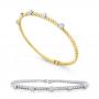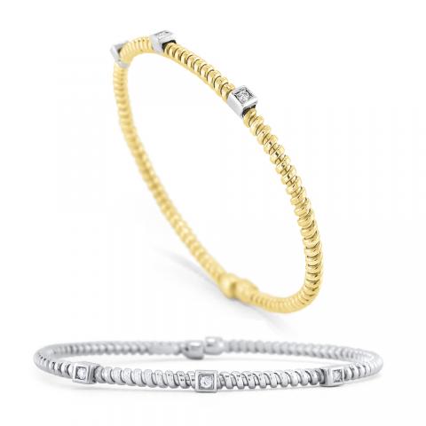 Our little twist on a gold and diamond bangle - wear it solo or stacked in various gold colors.