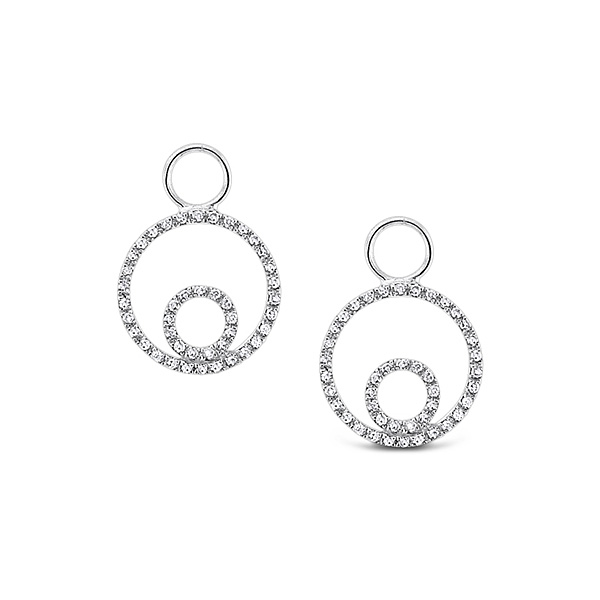 Diamond Double Circle Earring Charms in 14k White Gold with 86 Diamonds weighing .18ct tw