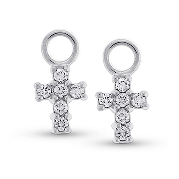 Diamond Cross Earring Charms in 14k White Gold with 12 Diamonds weighing .30ct tw.