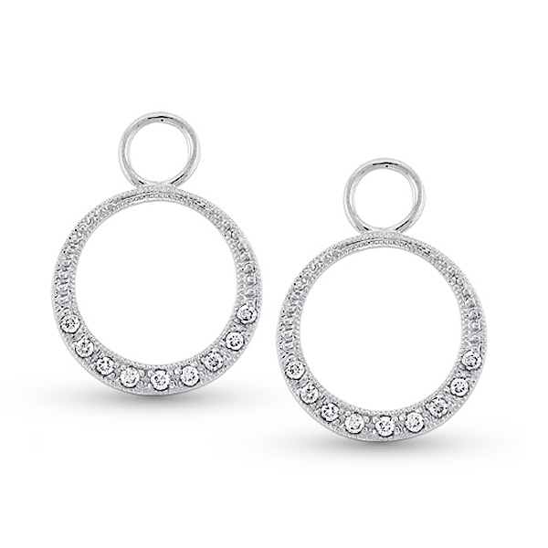Diamond Small Circle Earring Charms in 14k White Gold with 18 Diamonds weighing .12ct tw.