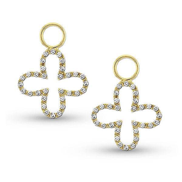 Diamond Clover Earring Charms in 14k Yellow Gold with 64 Diamonds weighing .24ct tw.
