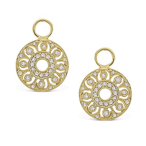 Diamond Small Filigree Earring Charms in 14k Yellow Gold with 56 Diamonds weighing .25ct tw.