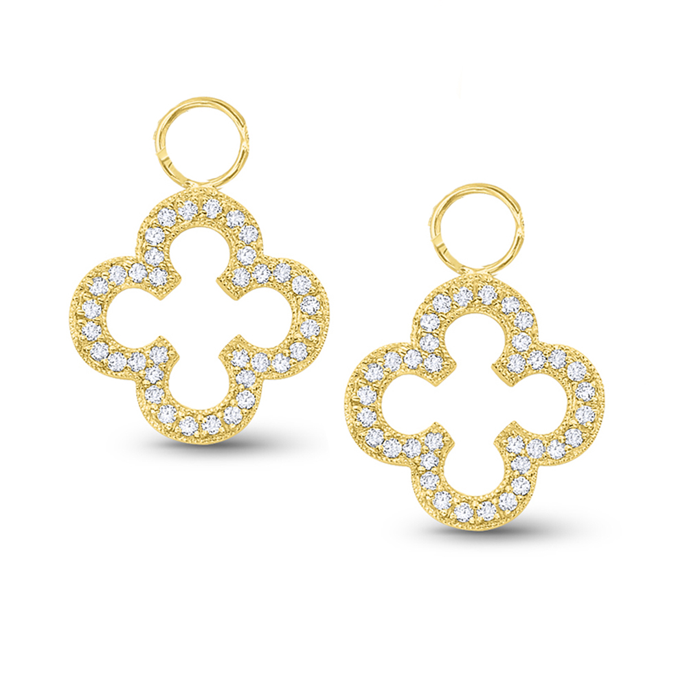 These diamond clover earring charms combine the playful clover shape with the elegant sophistication of 72 glamorous .32 ct tw diamonds. You are sure to immediately fall in love with the sweet and subtle charm of these gorgeous earrings and you will want to wear them to compliment every outfit!