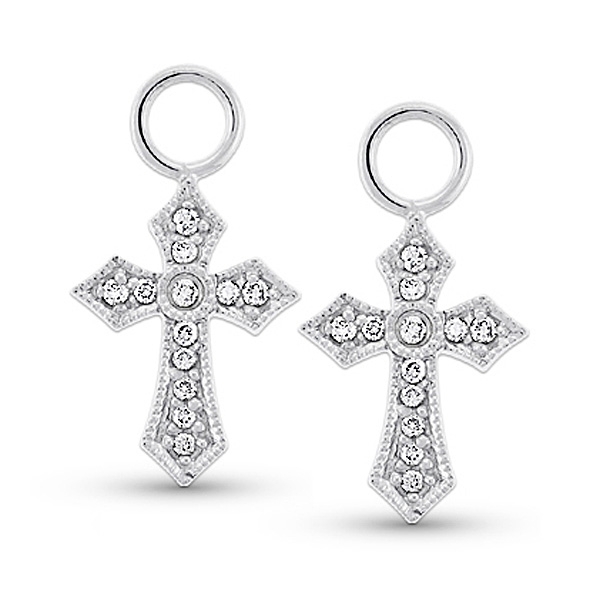 Diamond Cross Earring Charms in 14k White Gold with 24 Diamonds weighing .22ct tw.