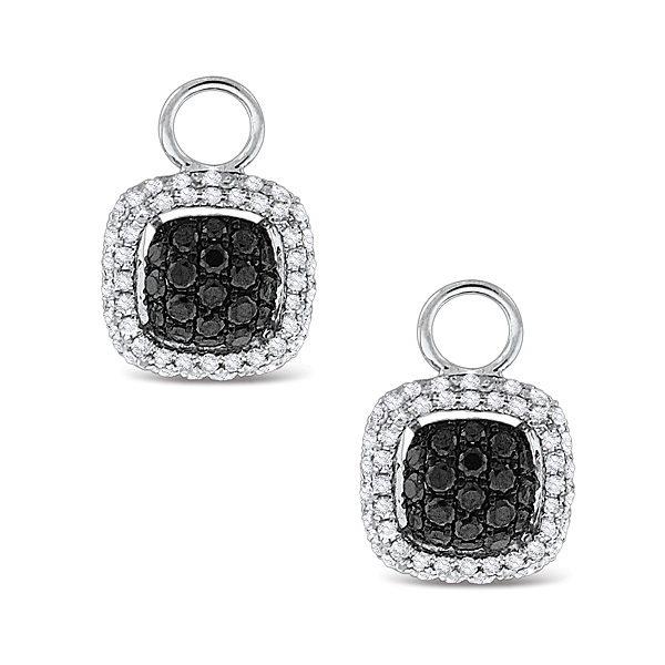 Black And White Diamond Square Earring Charms in 14k White Gold with 134 Diamonds weighing .74ct tw.
