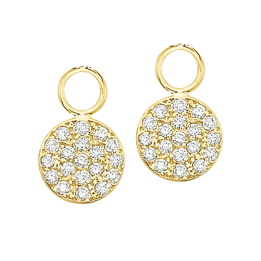 Dress up your hoop earrings with this sparkling diamond pave disc earring charms. Mix up gold colors to make your own personal style.