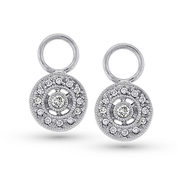 Diamond Circle Drop Earring Charms in 14k White Gold with 26 Diamonds weighing .14ct tw.
