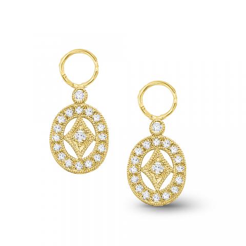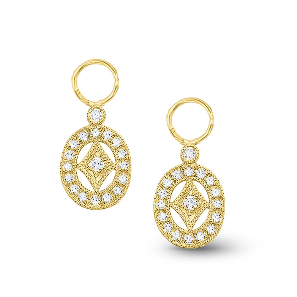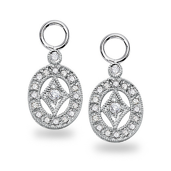 There are certain types of jewelry that are timeless and elegant and never seem to go out of style. These diamond oval drop earring charms are a great example. Their classic oval shape and 36 sparkling .22 ct tw diamonds give them a simple yet sophisticated quality that transcends trends and is forever gorgeous.