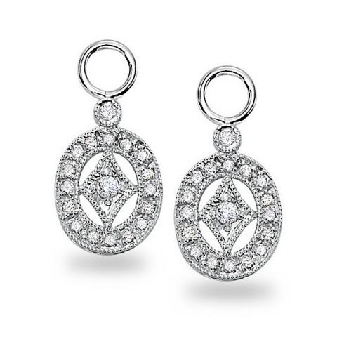 Diamond Oval Drop Earring Charms in 14k White Gold with 36 Diamonds weighing .22ct tw.