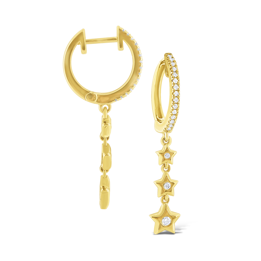14K Gold and Diamond Triple Star Earring