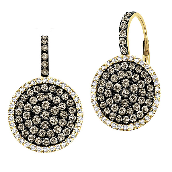 If you are looking for the right dramatic and bold earrings to convey your feminine sophistication and elegance, these champagne and white diamond circle earrings are absolutely stunning. They command attention with their 156 glinting 1.12 ct tw diamonds and brazen circular design. You are sure to make an impact with these stunners!