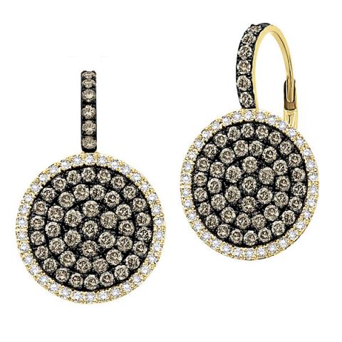 Champagne And White Diamond Circle Earrings in 14k Yellow Gold with 156 Diamonds weighing 1.12ct tw.
