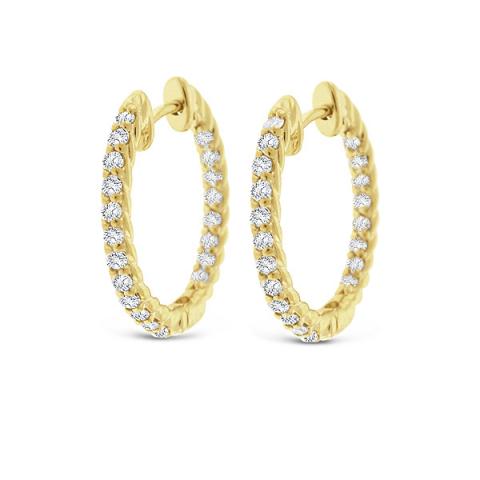 Diamond Inside Outside Hoop Earrings in 14k Yellow Gold with 40 Diamonds weighing .60ct tw.
