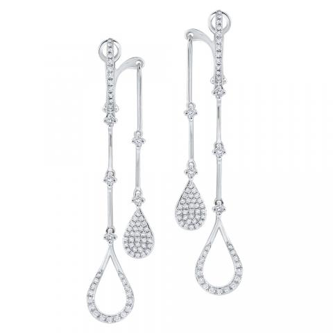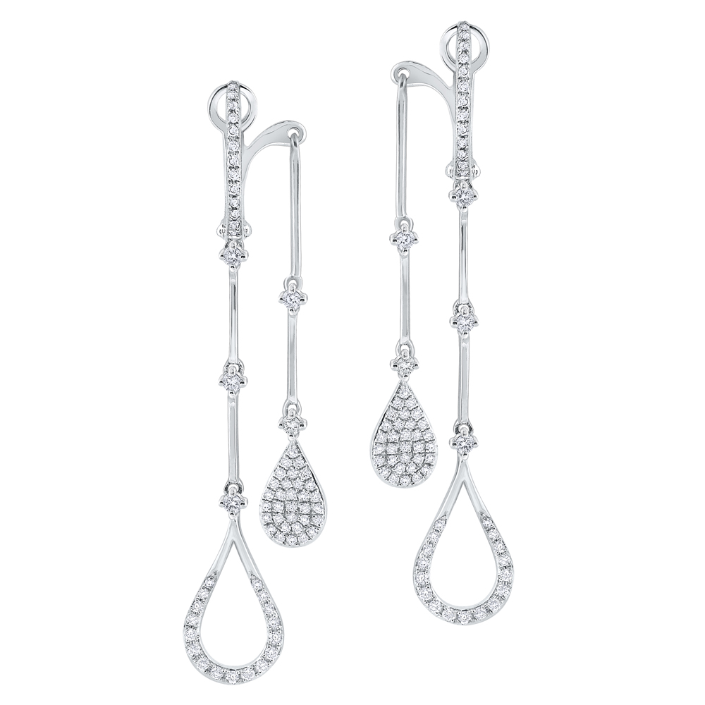 Open pear shapes dangle from the front of this unique earring while solid diamond pears dangle from the back. Pair with the matching necklace N1142.
