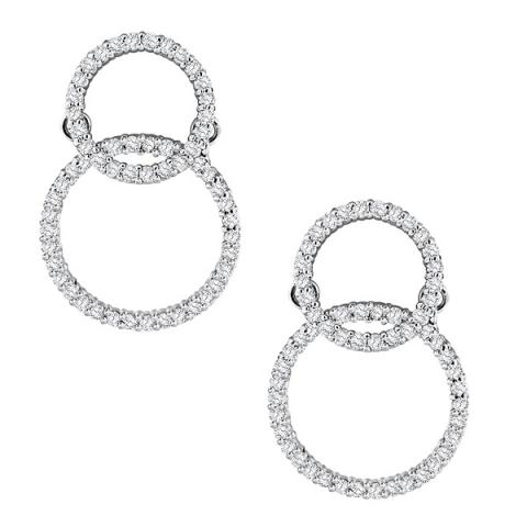 Diamond Double Circle Earrings in 14k White Gold with 116 Diamonds weighing .79ct tw.