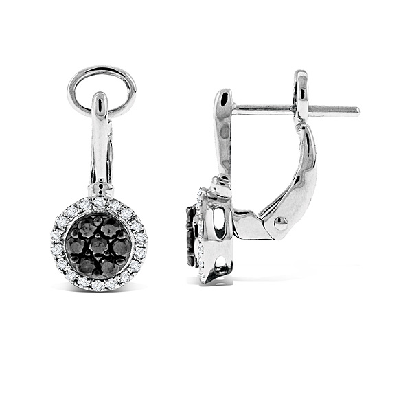 Black And White Diamond Small Disc Earrings in 14k White Gold with 50 Diamonds weighing .44ct tw.