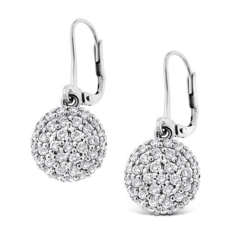 Diamond Circle Drop Earrings in 14k White Gold with 72 Diamonds weighing 1.07ct tw.