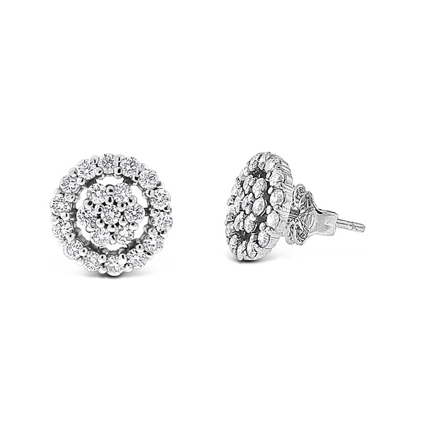 Like a sparkling star in the night sky, these diamond cluster earrings glimmer and gleam, sparking in the most alluring way. The 42 .62 ct tw diamonds reflect light through their multifaceted surfaces and give these sophisticated earrings an elegant complexity that will be sure to dazzle everyone in the room.