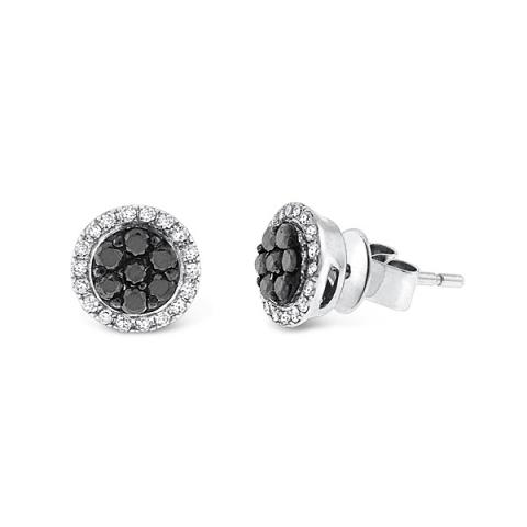 Black And White Diamond Stud Earrings in 14k White Gold with 50 Diamonds weighing .38ct tw