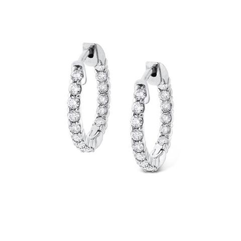 Diamond Inside Outside Hoop Earrings in 14k White Gold with 30 Diamonds weighing .90ct tw