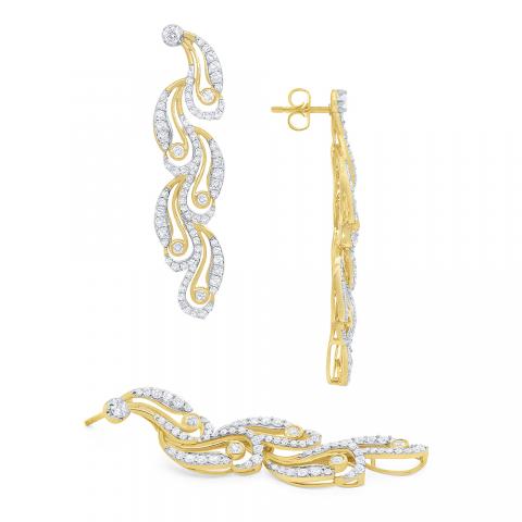 Diamonds and gold form flowing waves to make up these stunning statement earrings that move freely on the ear.
