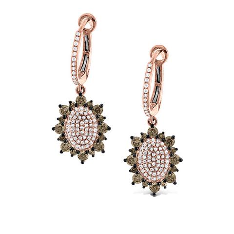 Champagne And White Diamond Drop Earrings in 14k Rose Gold with 168 Diamonds weighing 1.26ct tw