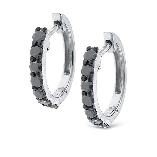 What could be more bold and seductive than these black diamond mini hoop earrings? When you really want to make an impression you can wear these stunning sparklers and really stand out from the crowd. They are made with 14 glittering .40 ct tw diamonds and are pictured here in white gold with dramatic black rhodium.