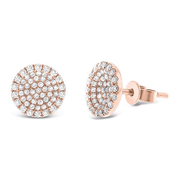 Diamond Disc Earrings in 14k Rose Gold with 110 Diamonds weighing .50ct tw.