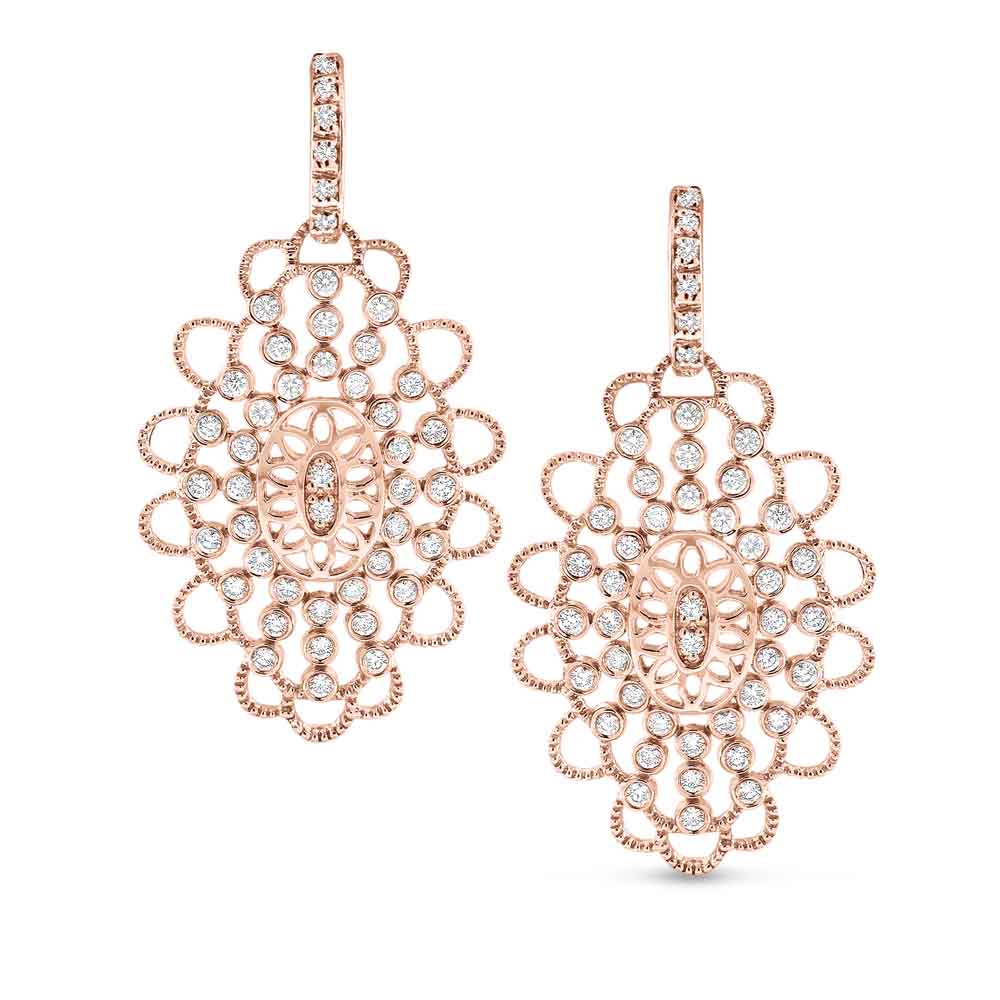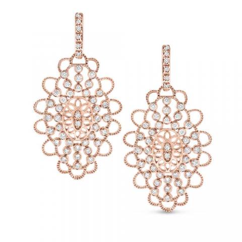 Diamond Romance Style Fashion Earrings in 14K Rose Gold with 92 Diamonds Weighing 1.20ct tw