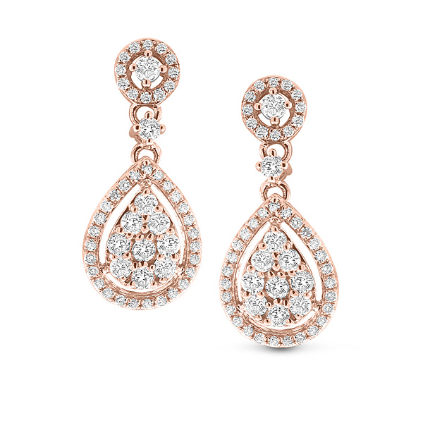 Diamond Teardrop Earrings in 14k Rose Gold with 100 Diamonds weighing .70ct tw.