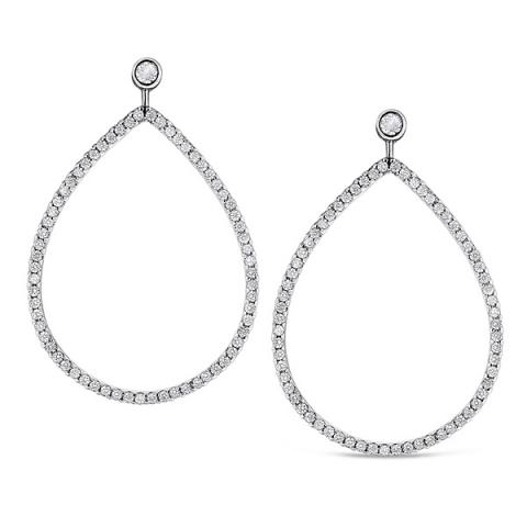 Diamond Small Teardrop Earrings in 14k White Gold with 132 Diamonds weighing 1.08ct tw.