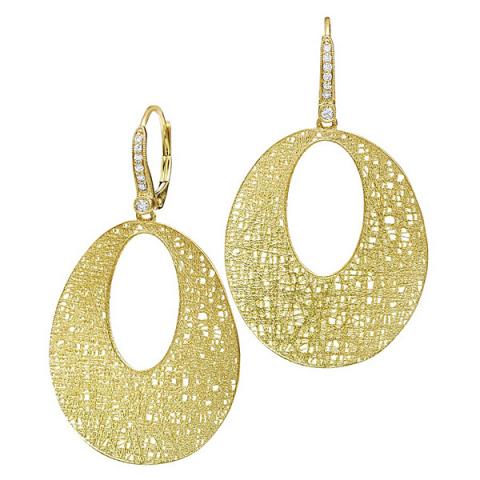 You're a stylish trendsetter who always loves to wear the latest and hottest, so you are such to love these Aria collection diamond oval earrings. The shape is modern and the materials are high quality and finely crafted, making them a bold and beautiful fashion statement. Contains 14 .10 ct diamonds and is shown here in yellow gold.