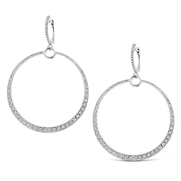 Diamond Circle Earrings in 14k White Gold with 96 Diamonds weighing .56ct tw.