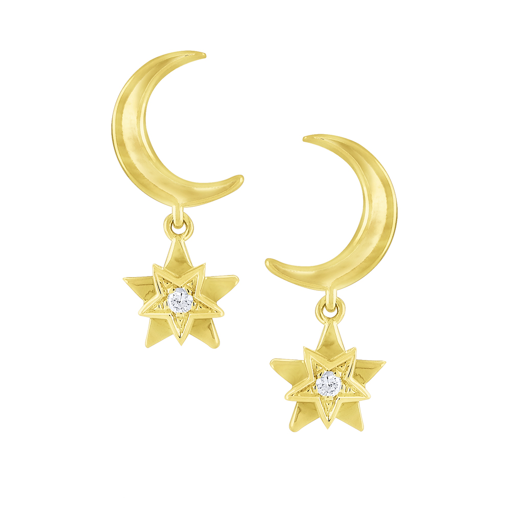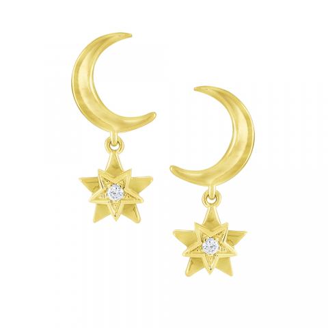 Wish upon a star! These golden sparklers with diamond accents dangle playfully below golden moons.