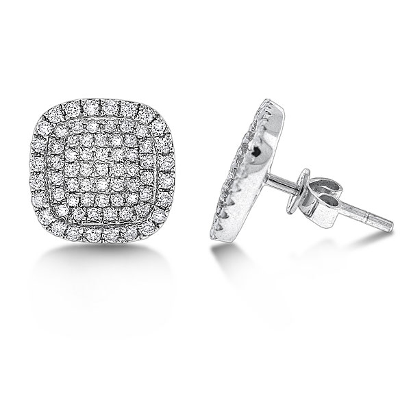 Diamond Small Square Shaped Earrings in 14K White Gold with 138 Diamonds weighing .46ct tw