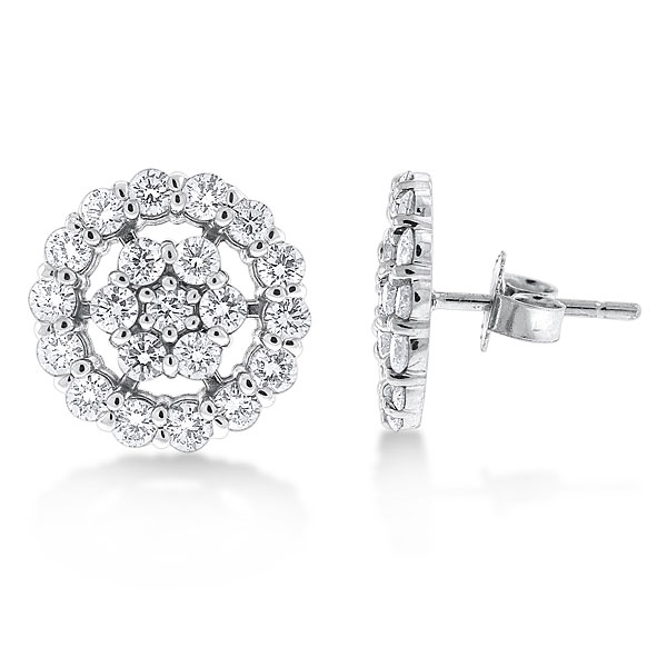 Diamond Stud Earrings with Halo in 14K White Gold with 42 diamonds weighing 1.25ct tw