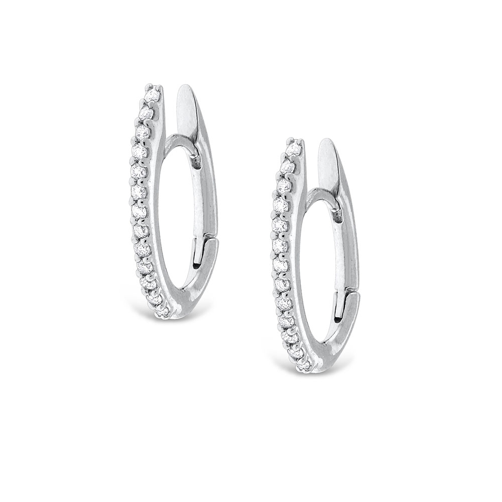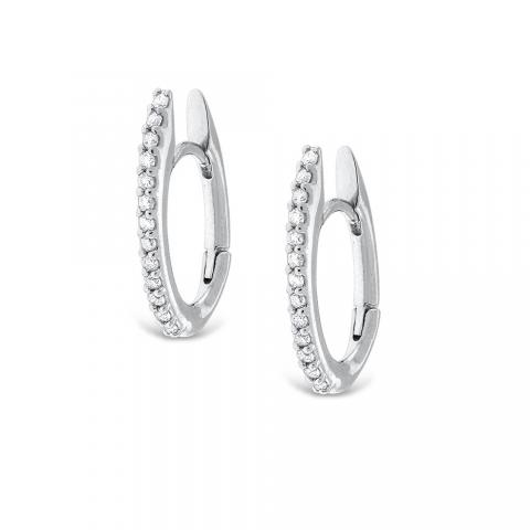 Diamond Oval Shape Hoop Earrings in 14K White Gold with 26 Diamonds Weighing .20ct tw