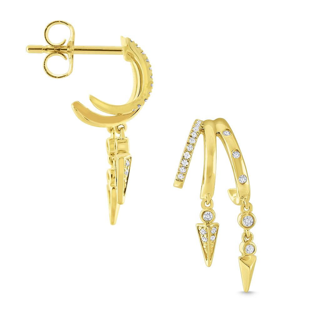 Get that multiple pierced look with one earring! This modern simple design will bring some edge to your everyday diamond look.